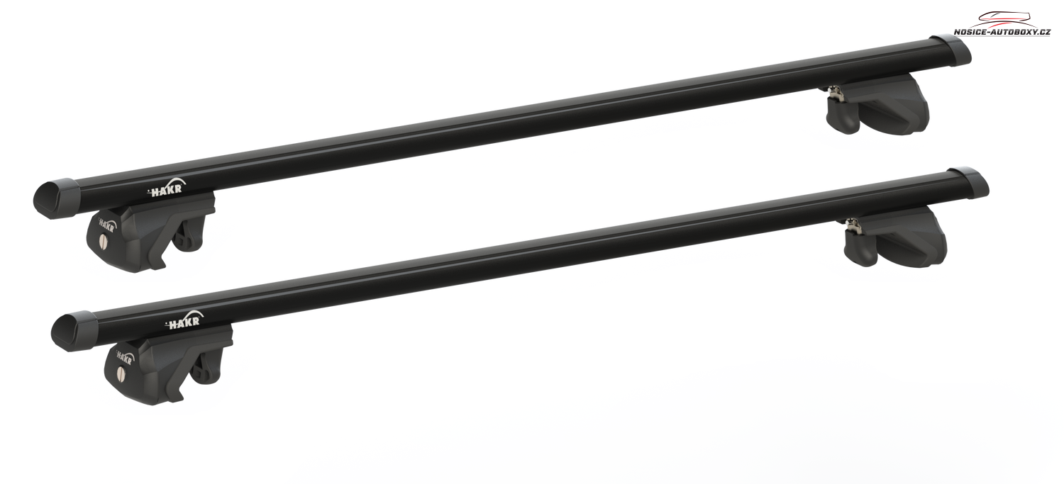 Příčník na podélné ližiny v černém hliníkovém provedení univerzální. Nosič je uzamykatelný.