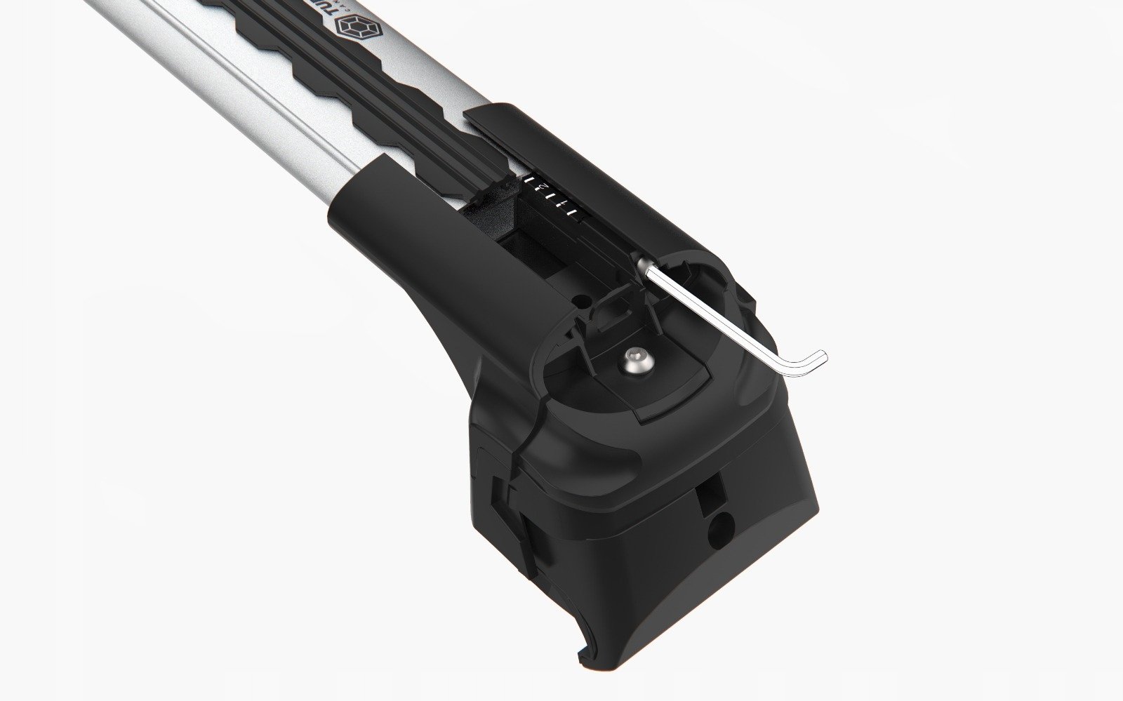 Uchycení nosičů se provádí na podélníky vozidla pomocí imbusového klíče. Nosiče lze uzamknout pomocí uzamykatelných krytek.